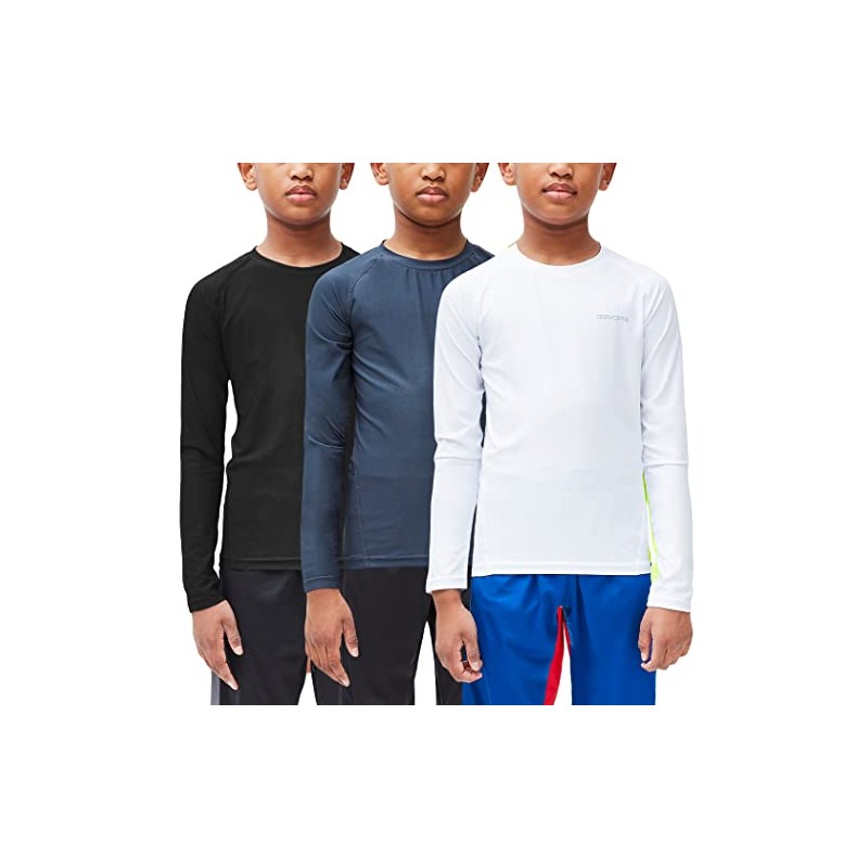 DEVOPS Youth Boys 3-Pack Compression Athletic Performance Baselayer Long Sleeve Shirts (X-Small, Black/White/Charcoal)