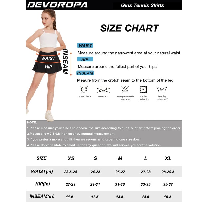 - Two Pockets: This girls' pleated tennis skirt comes with two pockets for carrying tennis balls, locker keys, bobby pins, coins, and other essentials on the go