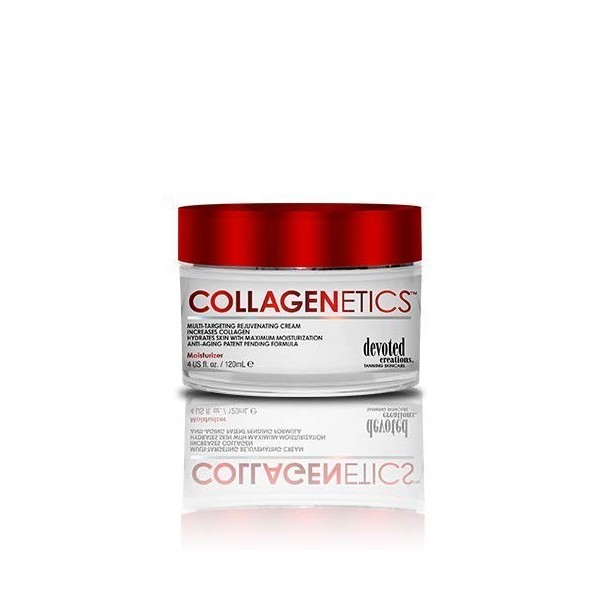 Devoted Creations COLLAGENETICS Rejuvenating CREAM daily skin (4 ounce)Rejuvenating Cream(Size 4 ounces)Ideal to use for daily skincare regime.Collagenetics Rejuvenating cream is formulated for optimum post Red Light Therapy results.Skin softening cream designed to reduce the appearance of wrinkles, fine lines, and signs of aging.Protects against free radical damage while hydrating moisturizing skin.Patented Anti-aging formula formulated with fruit extracts Lychee, Goji, Pomegranate and Acai.