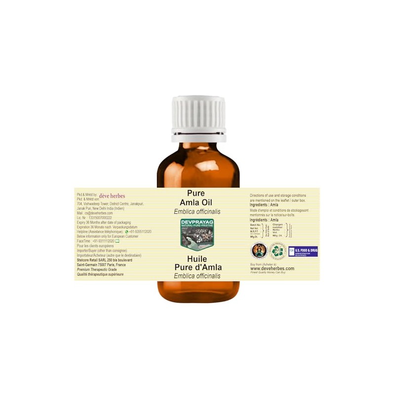 - Quantity - 30ml (1 oz) Container Type - High Quality Amber Glass Bottle. Botanical Name -Emblica officinalis, Pure, Natural, Undiluted, Therapeutic Grade Carrier Oil, Alcohol Free, Solvent Free, Vegan, Cruelty Free.