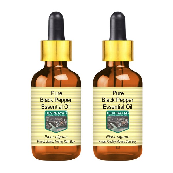 Devprayag Pure Black Pepper Essential Oil (Piper nigrum) with Glass Dropper Natural Therapeutic Grade Steam Distilled (Pack of Two) 100ml X 2 (6.76 oz)