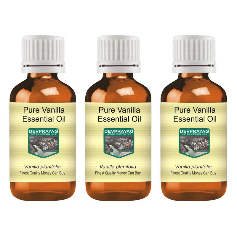 Devprayag Pure Vanilla Essential Oil (Vanilla planifolia) Natural Therapeutic Grade Steam Distilled (Pack of Three) 100ml X 3 (10 oz)