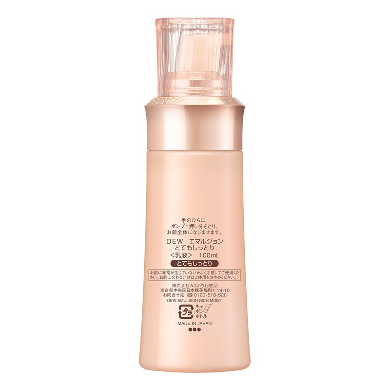 DEW Emulsion, Very Moist Main Unit, 3.4 fl oz (100 ml), Milky Lotion