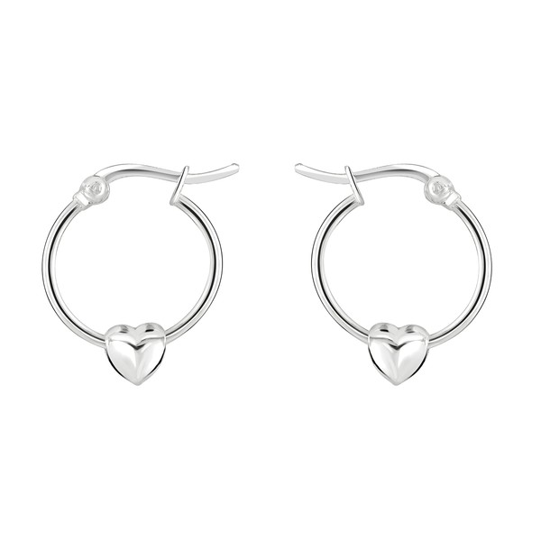 Dew Sterling Silver Heart Puff Hoop Earrings