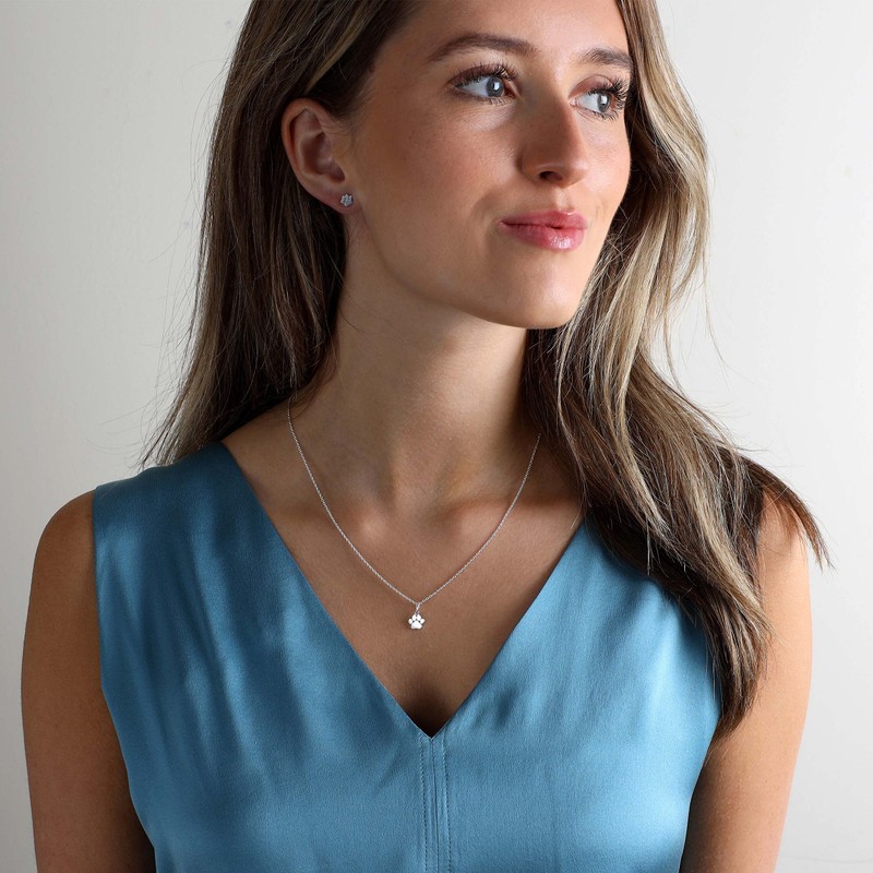 Dew Sterling Silver Small Paw Print Stud Earrings