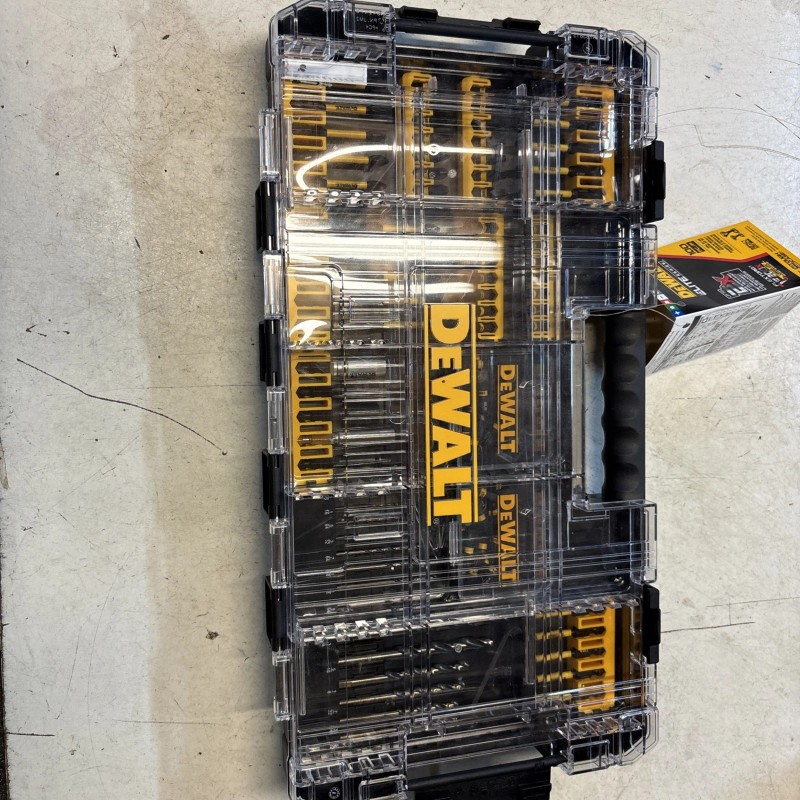 The DEWALT 100-Pc FlexTorq Bit Set is a comprehensive collection of drill bits suitable for various applications. Featuring black oxide coated High-Speed Steel (HSS) material, these impact ready bits are designed for tough use. The set comes in a ToughCase for easy storage and transport, making it convenient for professionals and DIY enthusiasts alike. With a model number of DEWALT DWANGFT100SET, this set offers quality and durability for all your drilling needs.New.