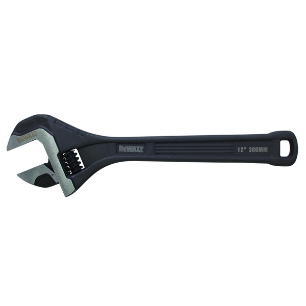 Dewalt All Steel Adjustable Wrench 12in, with Precision Engineered Jaws to facilitate Minimal jaw Movement Between Movable and Fixed Jaws for Precise adjustments.