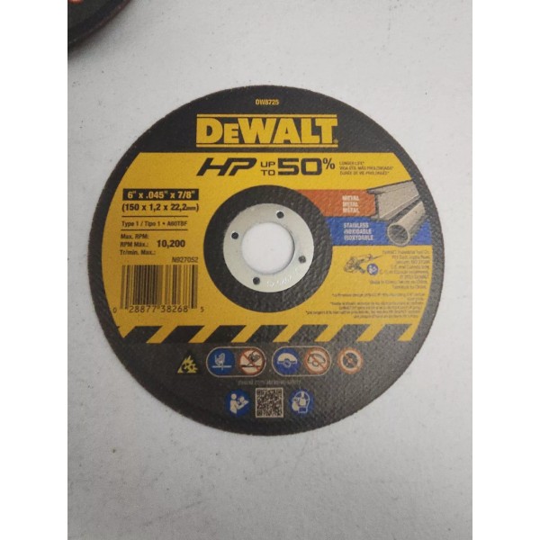 DEWALT DW 8725 6" THIN HP METAL CUTTING WHEEL 100 Pack.