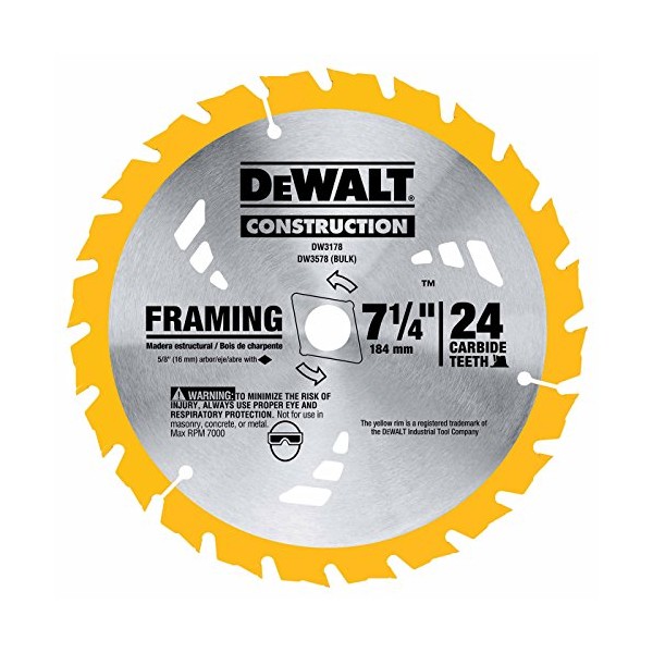 DEWALT DW3578B10 7-1/4-Inch 24T Framing Carbide Thin Kerf Circular Saw Blade