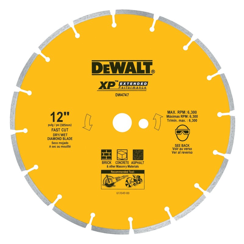 DEWALT DW4747 XP 12-Inch Dry Cutting Diamond Segmented Saw Blade with 1-Inch Arbor for Asphalt, Brick, and Concrete
