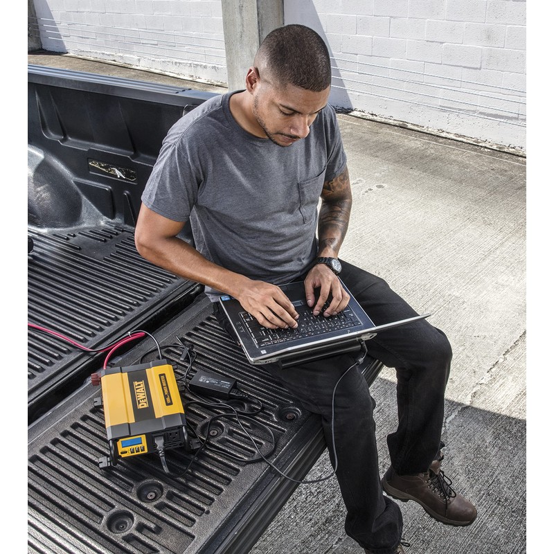 DEWALT DXAEPI1000 Power Inverter 1000W Car Converter with LCD Display: Dual 120V AC Outlets, 3.1A USB Ports, 12V DC Adapter, Battery Clamps