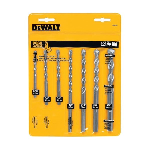 DEWALT Masonry Drill Bit Set, Percussion, Concrete & Block, 7-Piece (DW5207)
