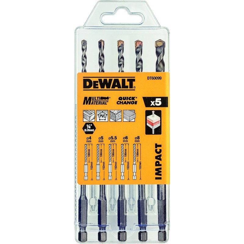 Dewalt multi-purpose drill bit, set of 5 pieces DT60099-QZ shock-proof, pack of 1, silver