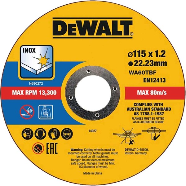 DeWalt Thin Stainless Steel Cutting Disc 115mm Pack of 10