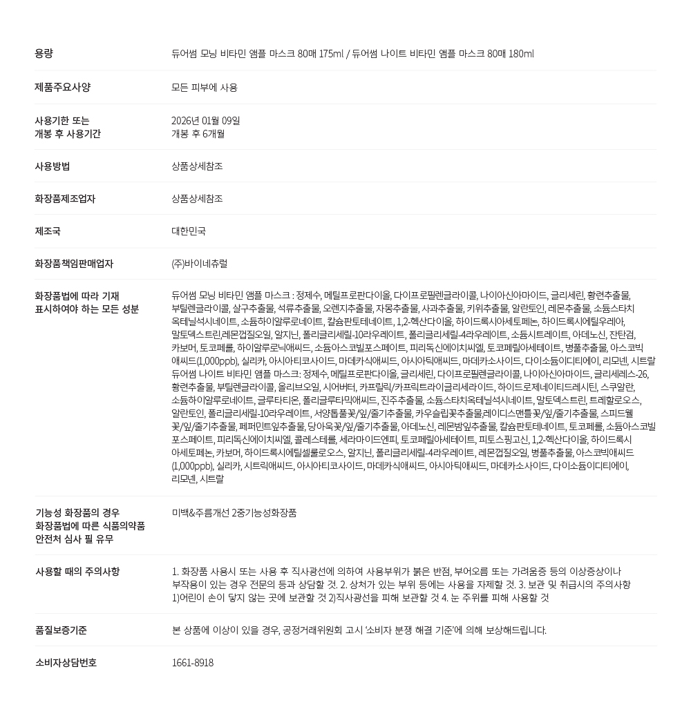 Dewarsome Vitamin Dual Mask (80 sheets in the morning / 80 sheets in the night), 3 pcs. / 듀어썸 비타민 듀얼 마스크(모닝 80매 / 나이트 80매), 3개