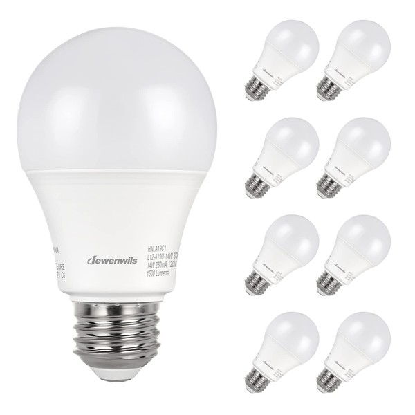 DEWENWILS 8-Pack A19 LED Light Bulb, 1500LM, 5000K Daylight LED Light Bulbs, 14 Watt(100 Watt Equivalent), E26 Medium Screw Base, Non Dimmable, UL Listed
