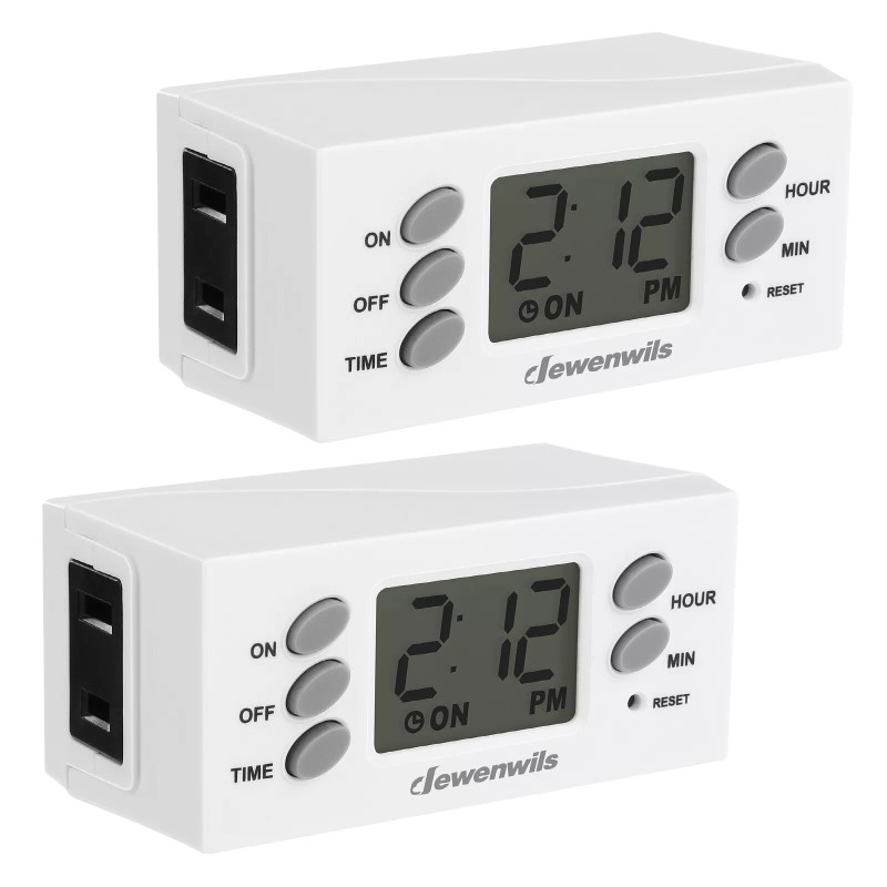 Our digital programmable timer comes with 1 polarized outlet and 2 modes for simply using with lights, lamps, small household appliances, etc.