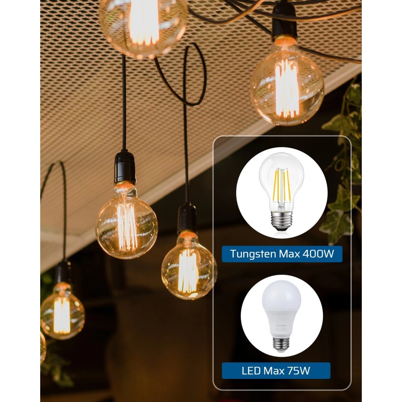 - [Wide Application] Supports up to 300W Tungsten and 75W dimmable LED lights; perfect for table lamps, floor lamps, dimmable outdoor string lights, and more. (Note: For use with decorative lights like Christmas lights, please ensure the lights are dimmable.)