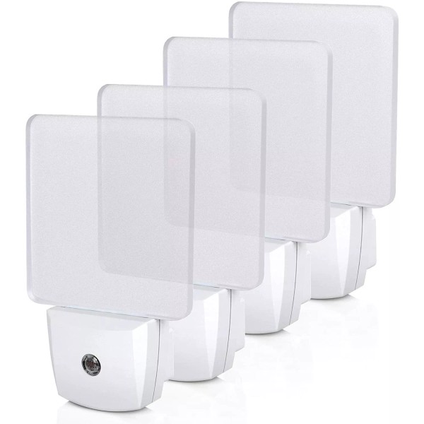 DEWENWILS Plug-in LED Night Light with Light Sensor,Warm White, Dusk to Dawn Sensor Flat Nightlight for Bathroom, Hallway, Bedroom, Living Room, UL Listed, 4 Pack