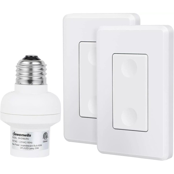 DEWENWILS Remote Control Light Socket, 2 Wall Mounted Controllers and 1 Bulb Base, Wireless Light Switch for Light Fixtures, No Wiring Needed, Expandable, ETL Listed, White