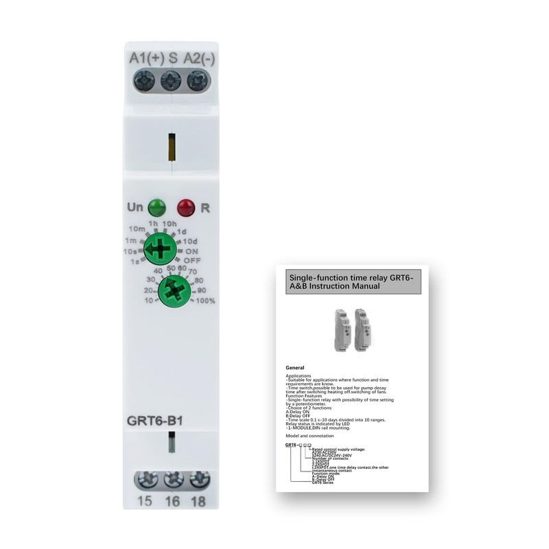 DEWIN Delay Time Relay, GRT6-B1 Single Function Time Relay, Mini Shut-Off Delay Time Relay, DIN Rail Mounting, AC/DC 24V-240V
