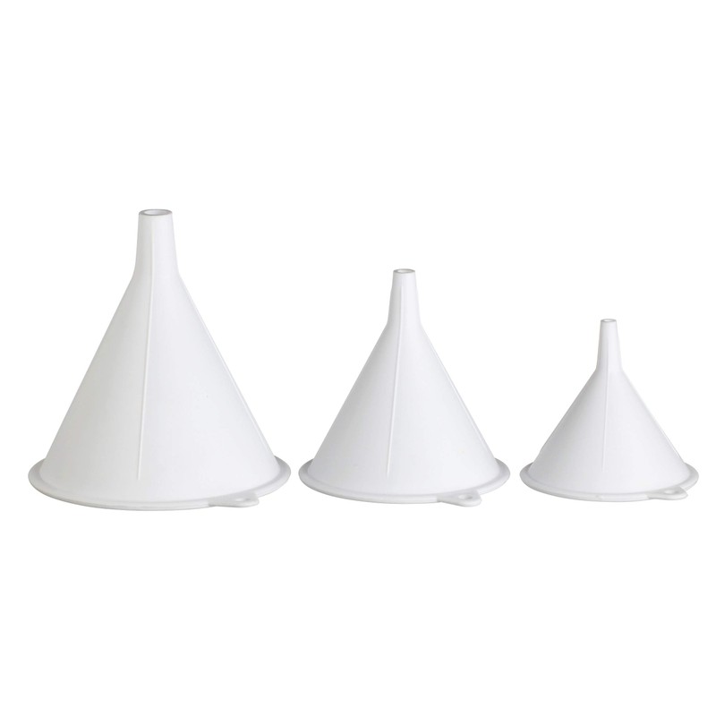 - Set of 3 white plastic funnels