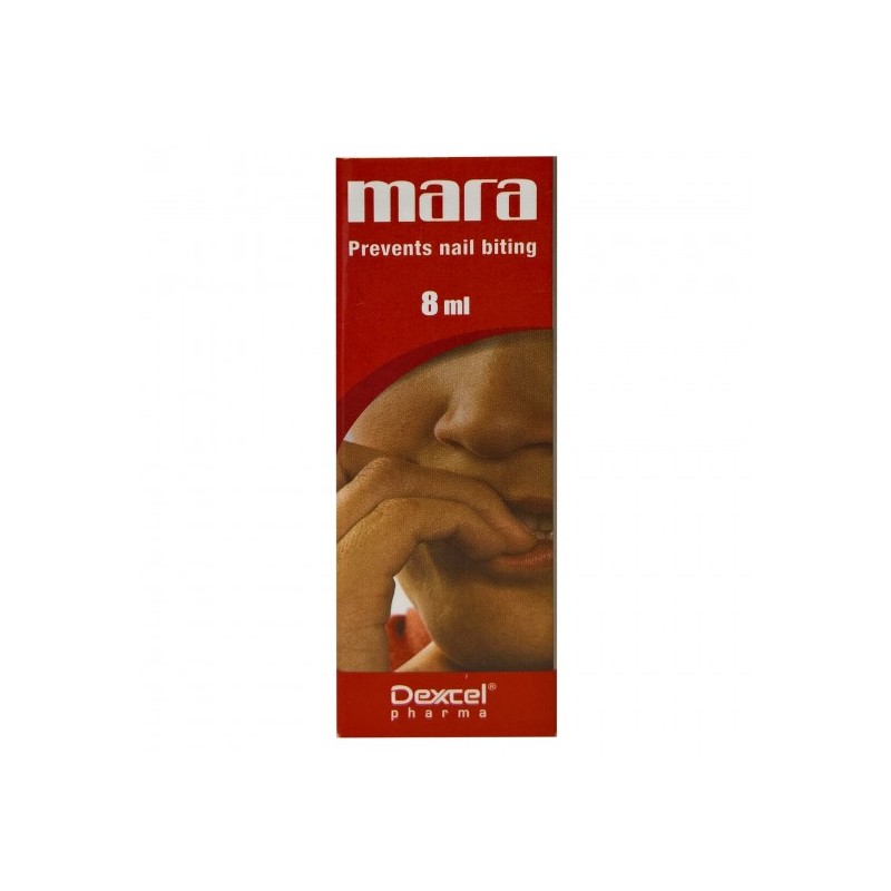 Bitter and transparent nail polish that is applied to the nail and the area around the nail to prevent nail biting.