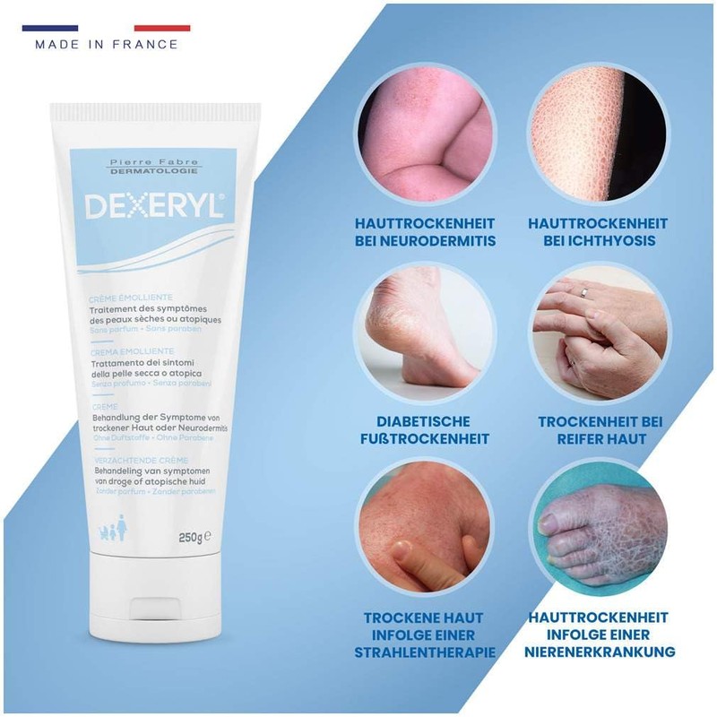 - Intensive care for dry skin: DEXERYL cream intensively nourishes the skin and relieves dryness.