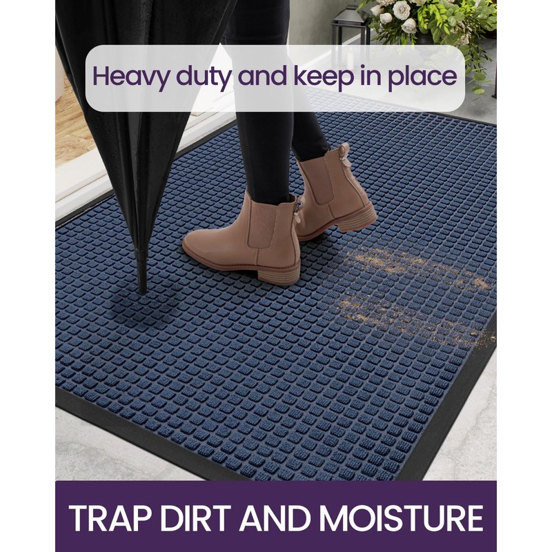 DEXI Front Door Mat Outside Entrance, 2x3 ft Rubber Entry Doormat Heavy Duty, Welcome Mats Non Slip for Inside House Floor Entryway Back Doors Exterior Patio, Squares Blue