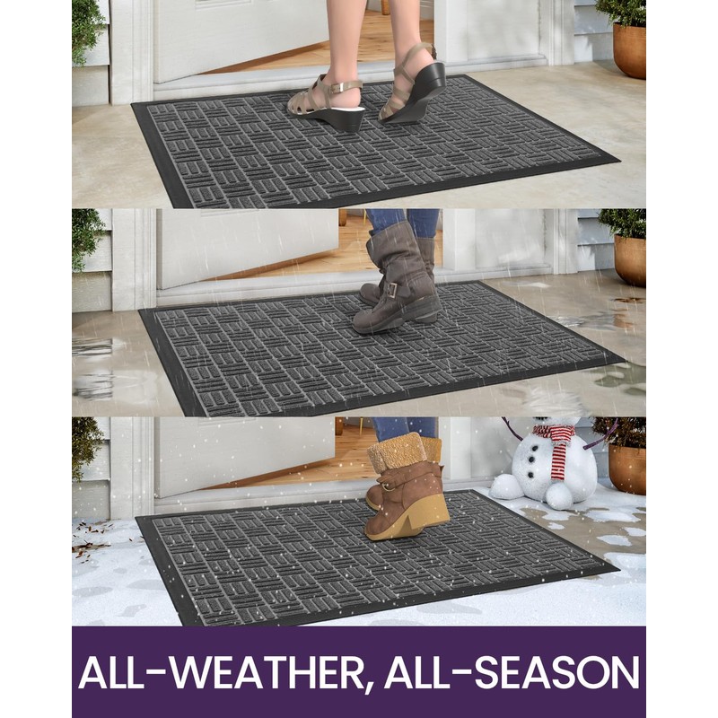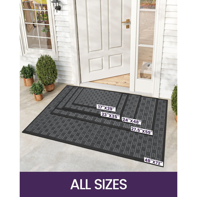 DEXI Front Door Mat Outside Entrance, All-Season Heavy Duty Rubber Doormat, Fade Resistant, Low-Profile, Easy Clean Patio Entryway, 27.5"x59", Maze Grey