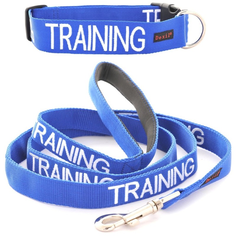 Dexil TRAINING Blue Colour Coded Dog Collar Luxury Padded Handle Lead Sets (L-XL & 1.8m)
