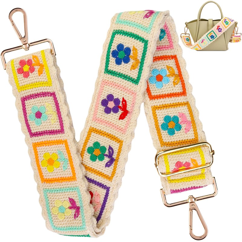 Dexspoeny Purse Straps Replacement Crossbody Straps,Vintage Shoulder Strap Purse Strap,Crochet Flower Guitar Strap,Adjustable Wide Purse Strap for Girl Women Gift-Beige-B