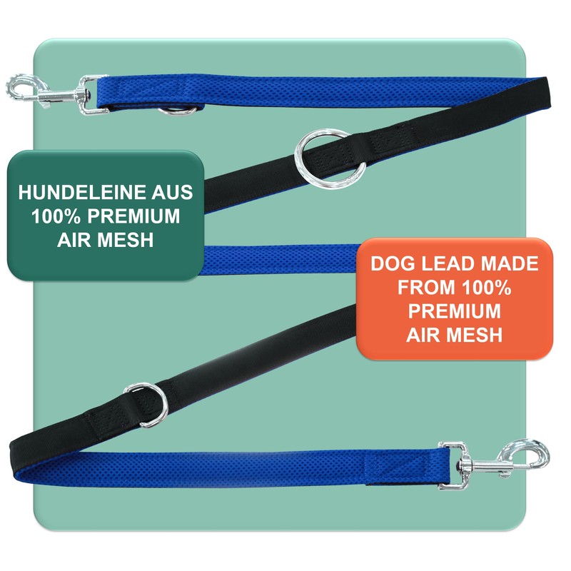 DEY - Premium Air Mesh Dog Lead 2 m | 3-Way Adjustable | for Small, Medium and Large Dogs | Many Colours | Double Lead for Dog/Cat | Recall Lead | Lead Lead | Puppy Lead | Blue, M