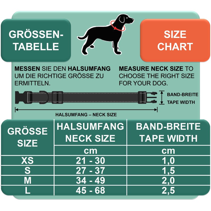 - Premium quality: the collar is made of 100% high-quality and durable premium nylon. Nylon is resistant to aging and abrasion. Thanks to the pleasantly soft nylon, the collar is comfortable to wear and adapts flexibly to the dog's neck.