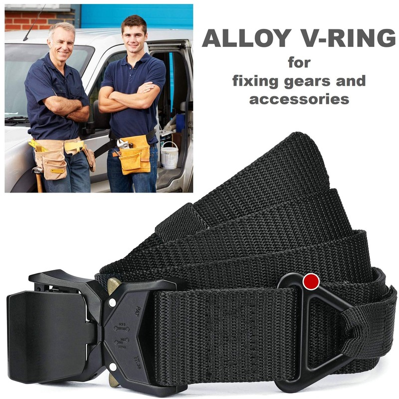 - Clamping Mechanism Latch Style Buckle, has very strong load-bearing capacity, definitely can put some weight on this belt and not worry about warping. Great locking mechanism can undertake strong strength and revent the webbing from slipping. V-RING for fixing gears and accessories.