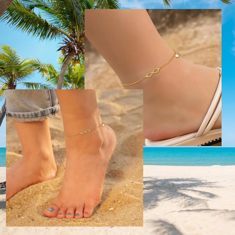 - Perfect combination: Infinity heart anklet for women is an indispensable foot jewellery this summer. Summer beach ankle chain can be worn with shorts, skirts, swimsuits and other summer outfits. Our single-layer women's anklet can not only be combined with other delicate anklets, but also with other jewellery such as necklace, earrings, bracelet etc. Wear this silver anklet and be the most elegant and fashionable girl in summer