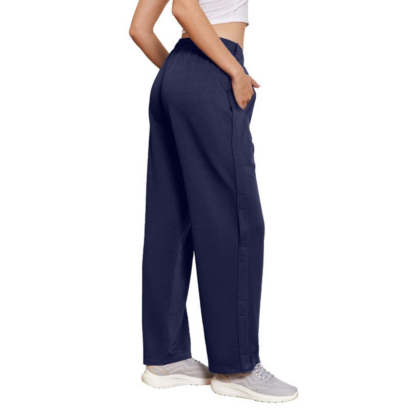 Deyeek Womens Tear Away Basketball Pants Wide Leg Casual Sweatpants for Women Post Surgery Adaptive Clothing with Pockets XL Navy Blue