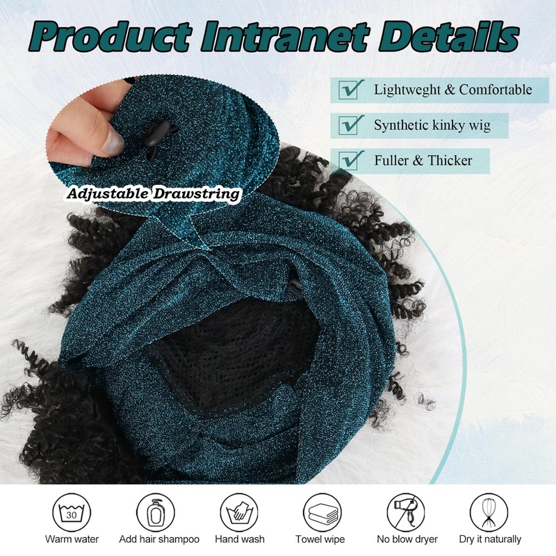 • Afro Wig Suitable: Our trendy Afro Curly Wig Head-Wrap Turban Updo Wig is for versatile styling; Afro Curly Wig is suitable for Daily Use, Concerts, Gifts, Theme Parties, Weddings, Dating,Prom, Cosplay, Halloween, ext