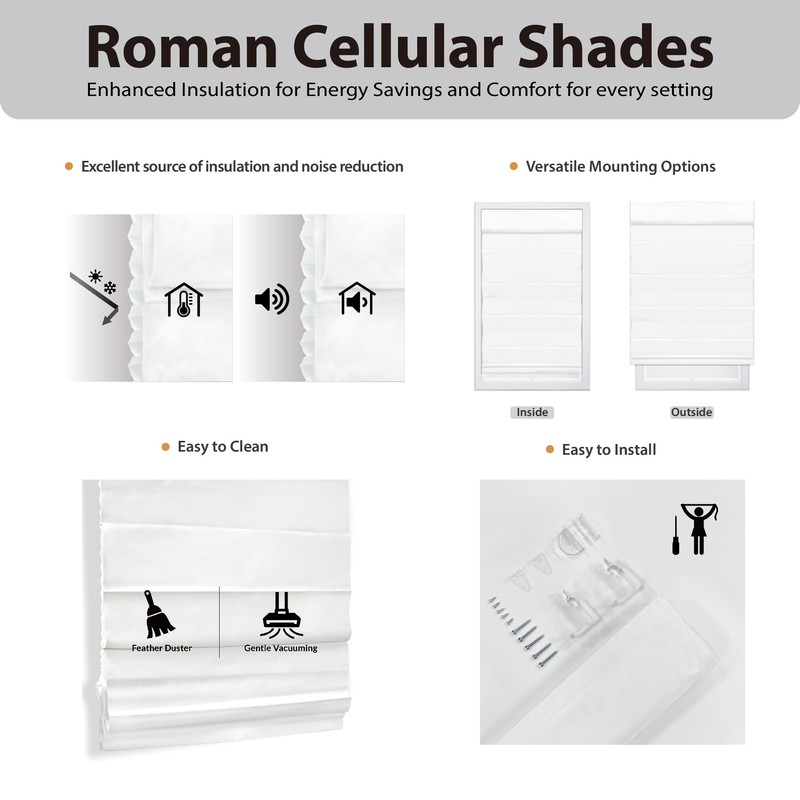 - Versatility: An excellent alternative to standard cellular or traditional fabric roman shades. Perfect upgrading option for home improvements. Known for their durability, our shades are suitable for doors, homes, and bedrooms.
