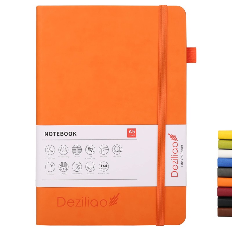 Deziliao Lined Journal Notebooks with Pen Loop, Hardcover Notebook Journal for Work, 100Gsm Premium Thick Paper with Inner Pocket, Medium 5.7''''x8.4'''', ?Orange, Ruled, 1 Pack