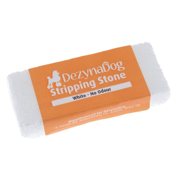 - EFFICIENT STRIPPING TOOL: DezynaDog Stripping Stone White is a highly efficient tool for hand stripping and carding in grooming. It helps remove dead hair and undercoat, providing a smooth and polished appearance to your pet's coat.