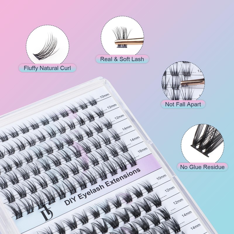 - Easy To Apply: Dreamflower DIY eyelash extensions have super soft and wide stem and they can be applies easily. Depending on the shape and length of your eyes, 4-6 cluster lashes per eye are sufficient.