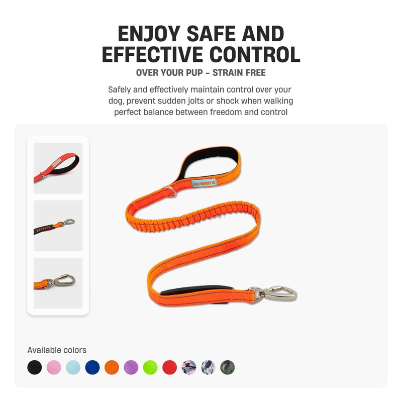 DF Co. Bungee Dog Leash | Strain Free & Shock Resistant for Control | Neoprene Padded Handle, Heavy-Duty Carabiner Clip, and D-Ring | Classic Blue, Size Regular