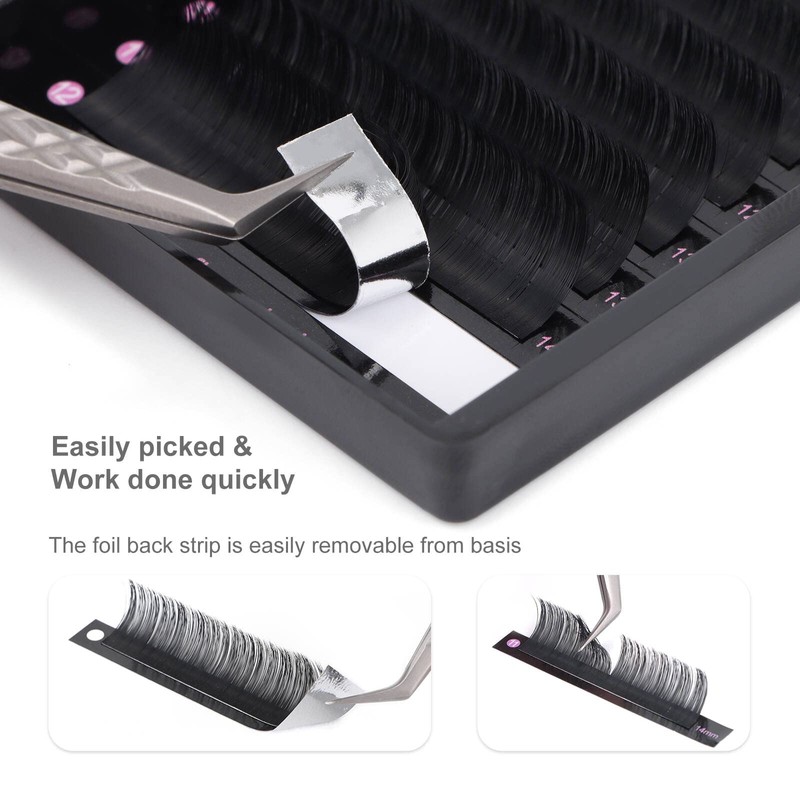 【Premium Material】The Dreamflower volume lash extension is made of high quality black PBT material, matte black with no blue tint; very soft, lightweight, natural, and comfortable to use. It is the best option for eyelash extensions.