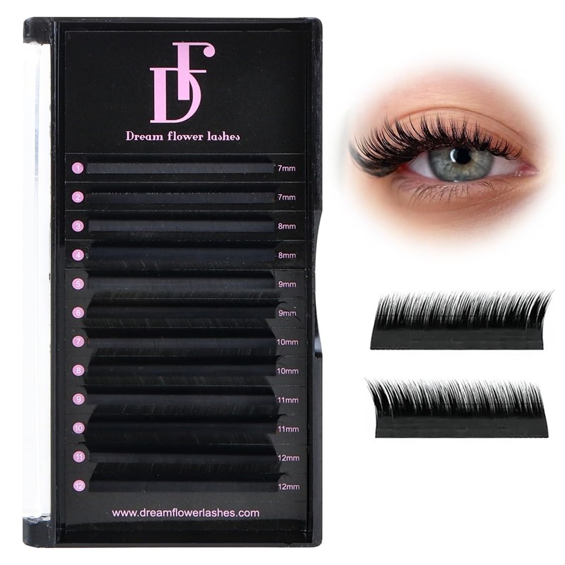 DF touchjoy Fox Cat Lash Extensions - 0.07 LC Curl Lashes, Volume Lash Extensions with 25° Tilted Sides, 7-12mm Lengths Lash Trays for Eyelash Extensions