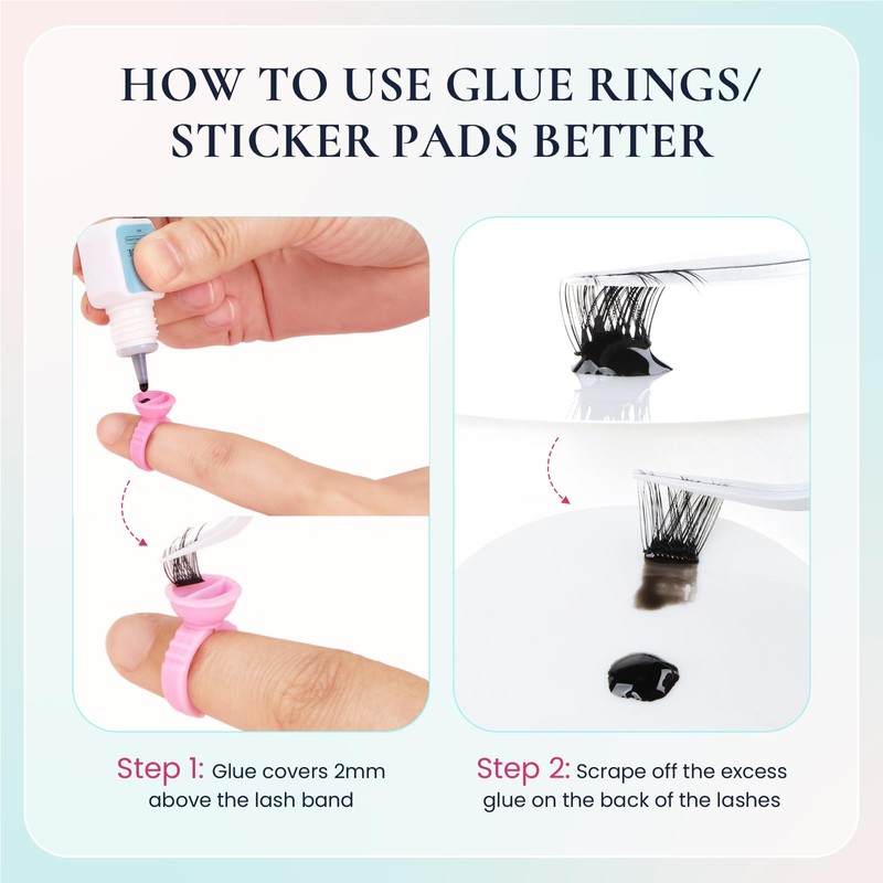 - 3-5s Drying Time: The drying speed of this eyelash glue is 3-5 seconds. When gluing, the glue should cover the eyelash stem 2mm upwards. When placing lash clusters, keep it still for 2-3 seconds to better adhere to natural eyelashes. Remove excess glue from the lash band to avoid sticking to the lower lid when blinking.