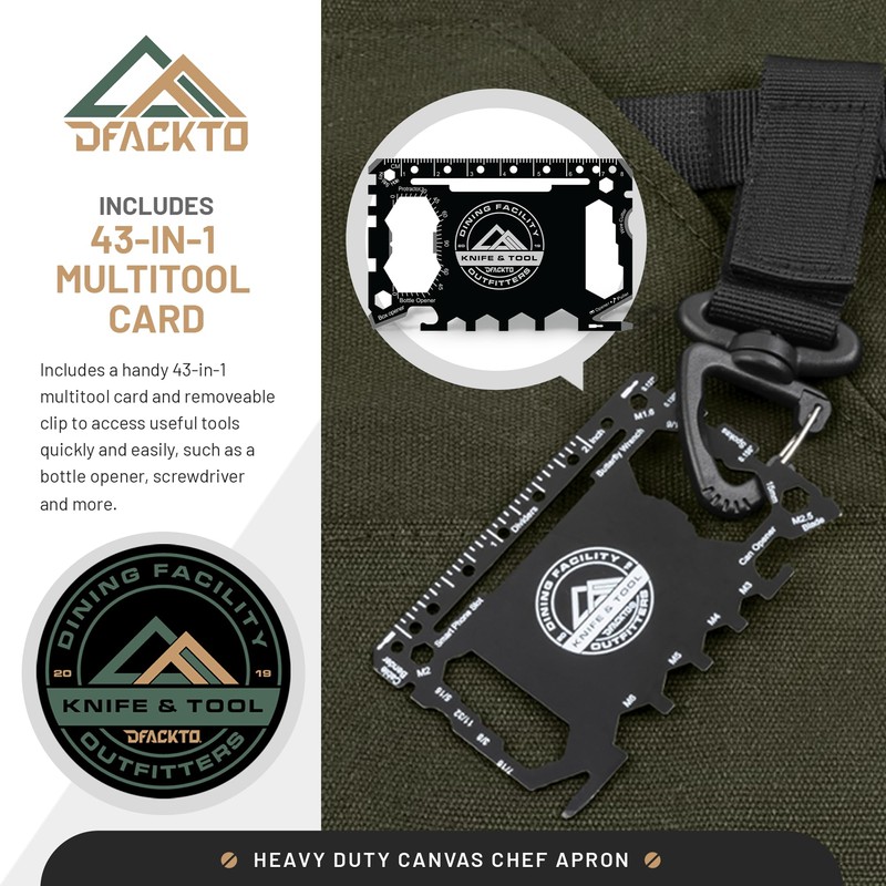 This work apron is versatile, doubling as a bbq apron for men, bartender apron, or utility apron for woodworkers and artists. The machine-washable canvas resists wear and tear, ensuring long-lasting use. The 43-in-1 multitool card adds convenience, making it a practical companion for professionals and hobbyists alike. Whether you need a men's cooking apron with pockets or a professional chef apron, DFACKTO is built for durability and function.