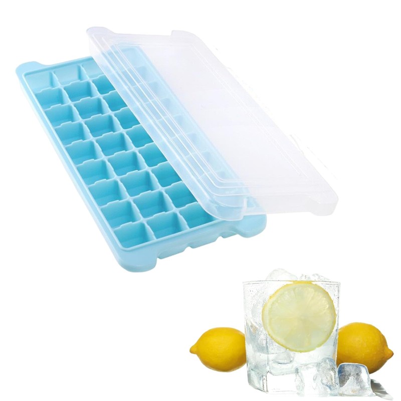 DFsucces 製氷皿 36個取り 蓋付き製氷器 四角型 シリコン製 氷器 冷凍保存 取り出し簡単 アイスクリーム ジュース 家庭用 オフィス用 大容量 (ブルー)