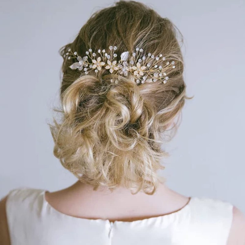 DFsucces Pearl Hair Comb Crystal Hair Accessories Formal Bridal Accessories Wedding Party Bride Headdress Hair Ornaments 1 Piece (Gold)
