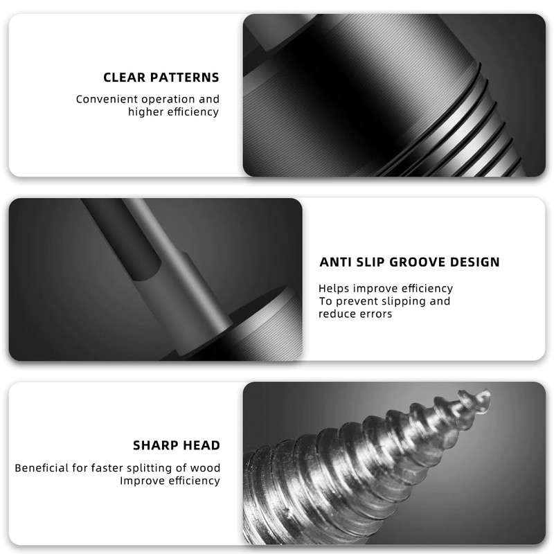 - Work effectively: high-performance twist drill bit titanium coating reduces friction and heat through heat treatment and makes cutting easier, more durable and longer lasting. The sharp head design improves work efficiency and makes it easier to split firewood. Not recommended for use on tall trees or larger diameter hardwoods.